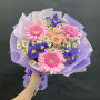Букет из розовых гербер, ирисов и ромашек в Рязани